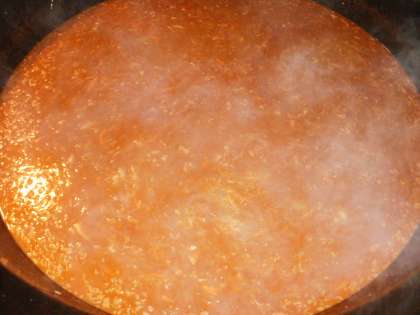 「ハッシュドビーフ」は3分の1の玉ねぎをきつね色になるまで炒めて牛肉・ホールトマト・人参・玉ねぎを加えて煮ます。具材が柔らかくなれば、手作りのブラウンルーを入れて弱火で煮込み調味料を入れ仕上げました。大人気の献立でした。