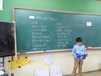 学級会では,一人一人後期のめあてを発表しました。
