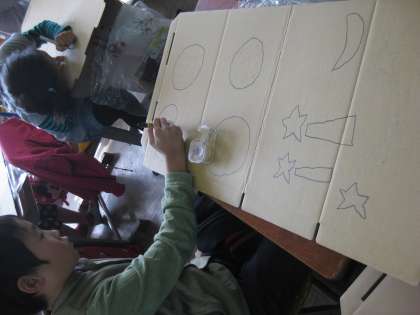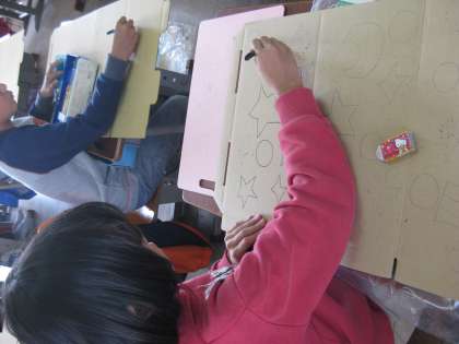 今日は下絵をマジックでなぞり,段ボールカッターで切りました。