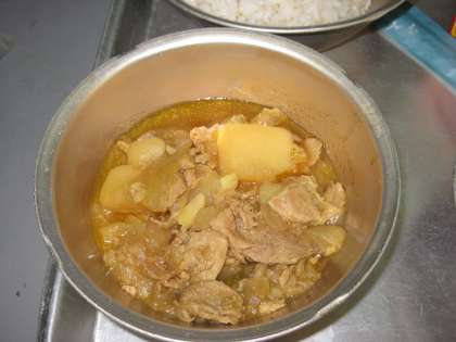 今日の給食は肉じゃがカレーあじ