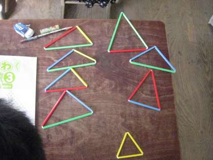 自由に三角形を作り,自分の観点を決めて分類しました。