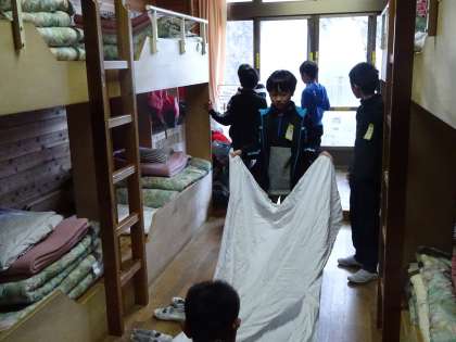 集いのあとは,寝具の片づけと部屋の掃除,荷物の整理です。