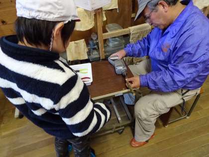 山の家にある木々の小枝を使った気温計づくりに挑戦しました。