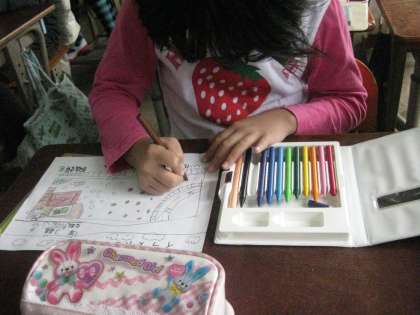 紙を配るとすぐに,子どもたちは,ごまときなこの絵を