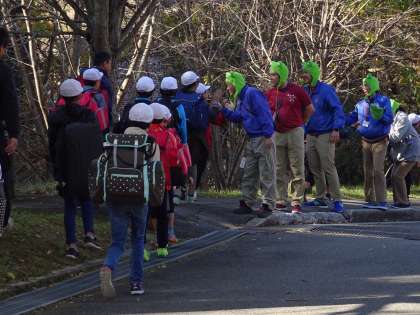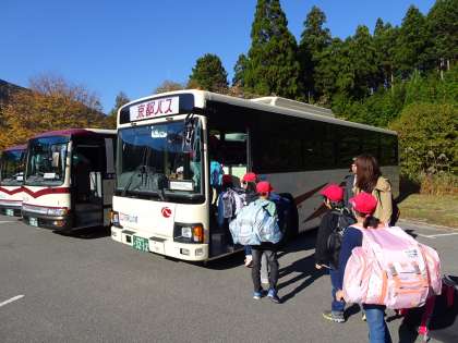 山の家な先生方に素敵なお見送りしていただいて,バスに乗り込みました。さあ,学校へ帰ります。