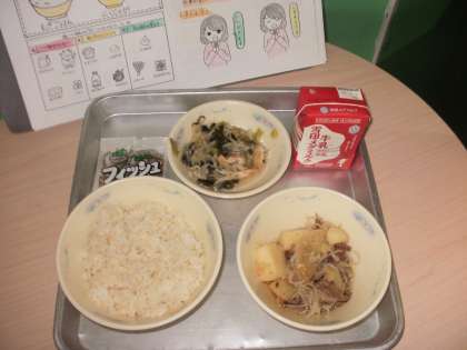 麦ごはん・牛乳・肉じゃが・切干大根の煮つけ・じゃこ