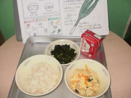 麦ごはん・牛乳・高野どうふの卵とじ・ほうれん草のおかか煮
