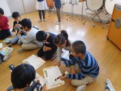 学芸会に向けて,「パフ」の合奏の練習をしています。