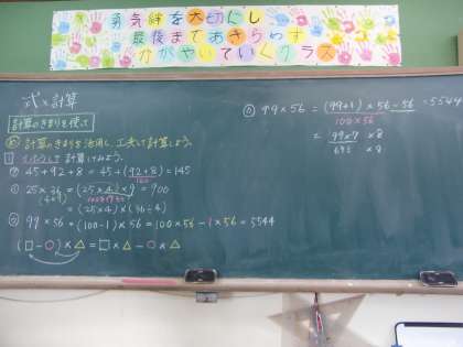 算数では,計算のきまりを活用して問題を工夫して解きました。