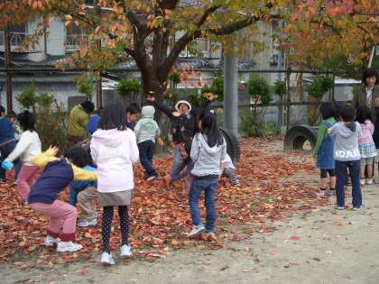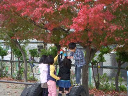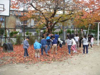 運動場に出ると,とてもきれいな葉っぱがたくさん落ちていました。「うわあ!じゅうたんみたい!」自然の美しさに感動です。