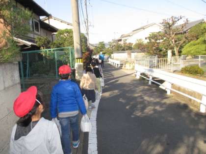 地域のおじいさん・おばあさんに,民生委員さんと一緒に1・2年生の子どもたちが,花を配りにいきました。