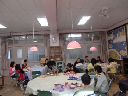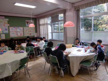 4日目のランチルームは,委員会ごとに座りました。