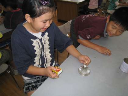 今日の実験は【マッチでアルコールランプに火をつける】!