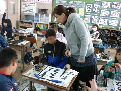 先日,神馬先生による書写の授業がありました。一つ一つ丁寧に指導していただき,