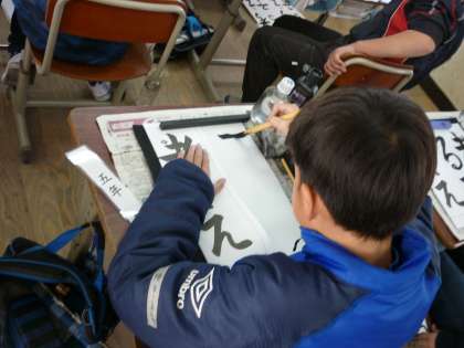子どもたちは一画一画集中して,慎重に書くことができていました。