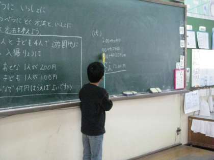 算数で「べつべつに いっしょに」の考え方で、問題を解きました。