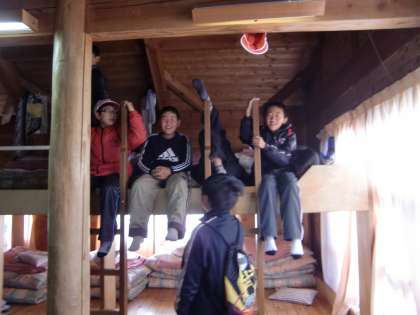 ロッジでの様子は,来年のためにと組体操の練習をしたり,