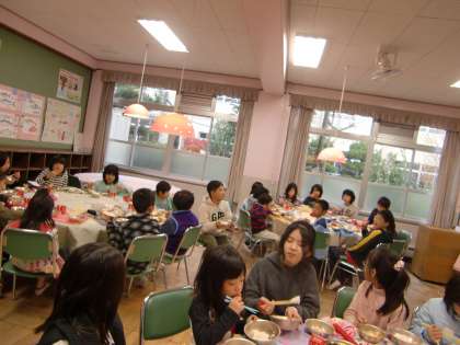 交流給食は,ランチルームで食べました。