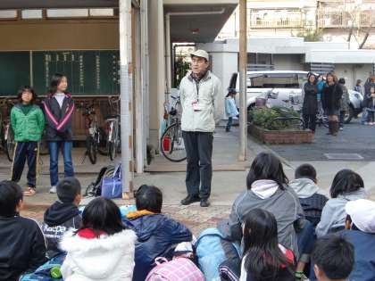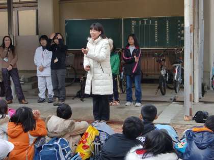 お家の方々がたくさんお迎えに来てくださっている中,学校到着し,