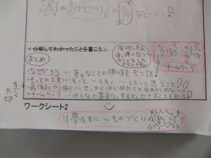 最後のまとめでは,「なぜだろう」「もっとの工夫」「最後までやりぬく」