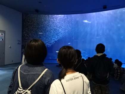 名古屋水族館では,かわいいベルーガの泳ぎやたくさんの海の生き物が泳ぐ様子を観察しています。タッチタンクでは海の生き物を見るだけでなく、触れながら観察することもできました。