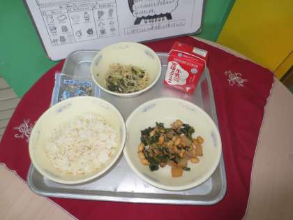 麦ごはん・牛乳・肉みそいため・切干大根の煮つけ・じゃこ