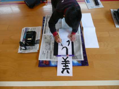 4年生と一緒にくすのき学級も「書きぞめ」に挑戦しました。