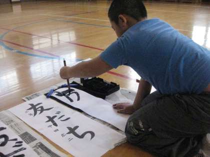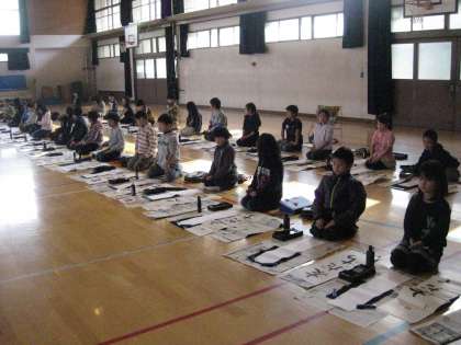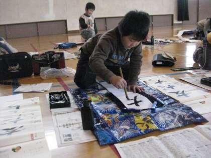 子どもたちは、初めての画仙紙に少し緊張していました。