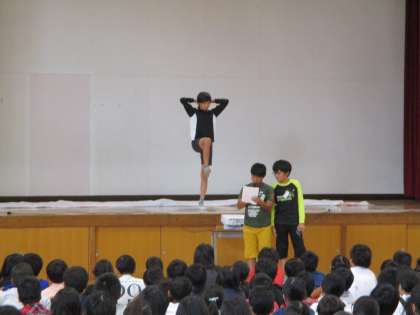 朝会の後に,保健安全員会の体幹ストレッチの紹介がありました。今日は「片足立ち15秒チャレンジ」でした。最初は大丈夫なようでしたが,10秒を超えるころから,ぐらぐらする子どもたちもいました。姿勢がよくなると,集中力向上につながります。ぜひ,おうちでもチャレンジしてみてください。