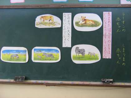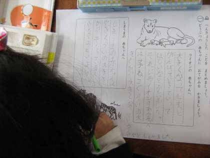 「どうぶつの赤ちゃん」の学習が終わりに近づきました。ライオンの赤ちゃんとしまうまの赤ちゃんに手紙を書くという形で,学んだことを表しました。