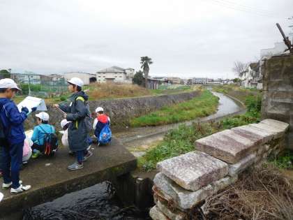 地域を流れる西高瀬川について学習しています。