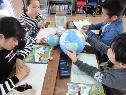 社会では地球儀や世界地図とにらめっこ。