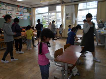 ほうきのはき方や机の運び方などやさしく声をかけてもらい,頑張っています。