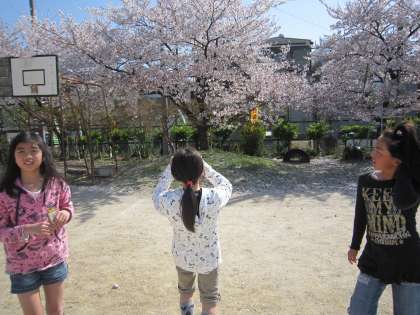5年生最初の図工は写真さつえいです。身近な校舎の中から絵にしたい風景を探しました。春ということもあって桜が人気でした。写真を使って次の時間からは教室で絵を描きます。