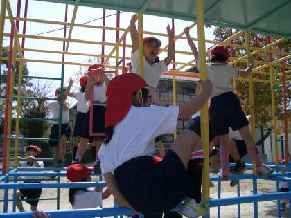 やっと遊具の使い方を学習し、小運動場で遊ぶことができるようになりました。中間休みになると教室を飛び出していきます。