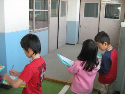 2年生が,1年生を学校案内するために,自分たちで各教室や部屋を確認しました。その後,教室や部屋の看板をグループでかきました。みんな,1年生の案内をうまくしようといっしょうけんめいです。