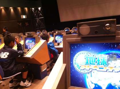 名古屋市内の電気の科学館に着きました。オームシアターで,参加型の環境の学習ゲームをしました。高得点を取ったのはだれ??
