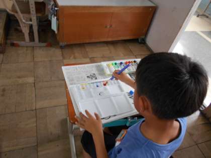 図工の学習で初めて,絵の具を使いました。