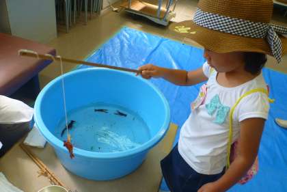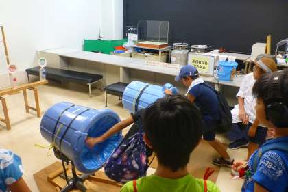 センターでは,ザリガニ釣りをしたり,イモリやナマズをさわったりしながら,様々な生き物とふれあうことができました。