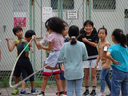 クラスの枠を越えて仲良く跳んでいます。