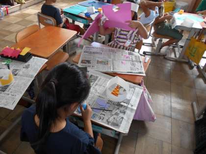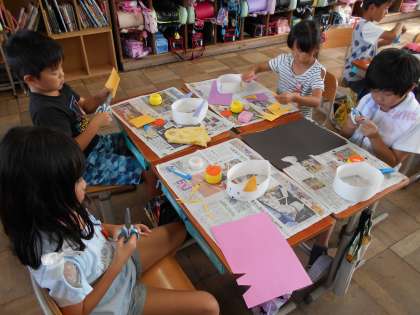 自分だけの冠はみんなのお気に入りになったようで,休み時間にかぶって遊んでいる姿がとても微笑ましかったです。また,おうちに持ち帰りますのでどんな作品に仕上がったのか見てあげてください。