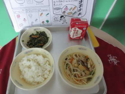 「かやくうどん」は、鶏肉・油揚げ・人参・ねぎ・しいたけが使われました。