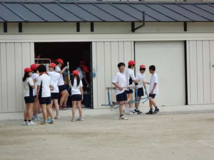体育で取り組んでいるハードル走。少ない人数で役割分担し,声をかけ合いながら学習を進めています。しかしタイムがはかれていなかったりグループによって走る回数に大きな差が出たりしました。学習後にみんなで反省をし,「スタートとゴールの人が息を合わせることが大事」ということや「分担をしっかりする」ことが挙がりました。次の時間に生かしてほしいと思います。