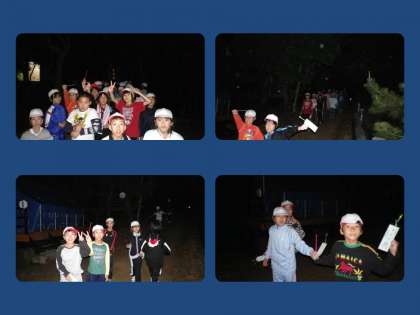 いよいよ1日目最後の活動,きもだめしです。きもだめしどきどきコースを歩きます。みさきの家に到着後,子どもたち全員で下見をしましたが,真っ暗な中ではさすがに怖い!!ところが,誰一人辞退する子もなく,一人1枚のおふだをしっかりと持って帰ることができました。4年生の肝の大きさに拍手!!