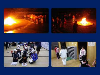 2日目の夜になりました。レク係の進行でキャンプファイヤーをしました。各組のスタンツとゲーム,フォークダンス(マイムマイム)を楽しみました。練習の成果がよく出て,心から楽しめたキャンプファイヤーでした。その後,1日のふり返りをして,男子は60畳,女子はバンガローで寝ます。