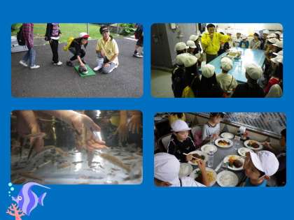 マリンランドに着きました。まず,ペンギンタッチをしました。このペンギンはおとなしい子で,たくさんの子になでてもらってもじっとしていました。柔らかい毛をしていました。マリンランドの中には,「ドクターフィッシュ」のコーナーもあり,ヒトの古い角質を食べてくれるそうなのですが,子どもの手にはあまり集まらず,大人の手にはたくさんのドクターフィッシュが群がってきました。