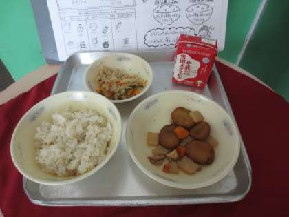 本日でから給食が始まりました。心の中で「いただきます」と言って1年生A班は初めての給食をしっかりと食べていました。