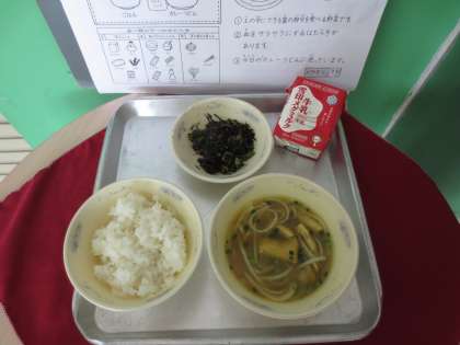 本日はB班も給食が始まりました。1年生の給食当番はそれぞれの担当を頑張っていました。