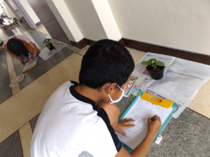 休業中に植えたツルレイシの観察をしました。