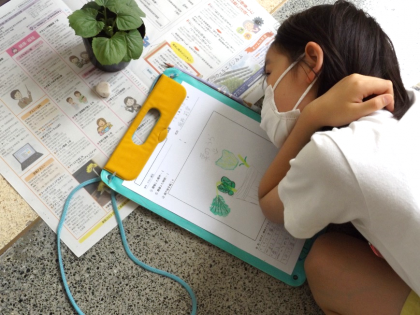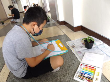 じっくり見て,色・大きさ・形を観察カードに記録していきます。